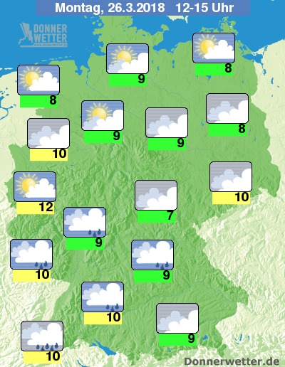 Heute Nachmittag bilden sich südlilch eines breiten Streifens vom Saarland bis nach Sachsen gebietsweise Schauer. Dicht bewölkt bleibt es auch von der Mitte des Landes bis nach Osten, sonst ist es häufig stark, hier und da auch mal aufgelockert bewölkt, dabei bleibt es weitgehend trocken. Die Temperatur liegt bei 7 bis 12 Grad.