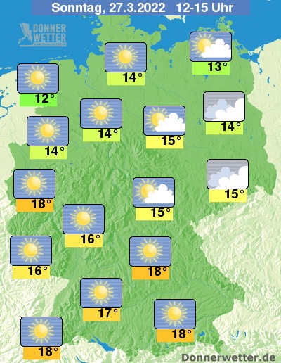 Heute Nachmittag ziehen im Osten und teils auch im Norden gebietsweise einige, teilweise auch dichte Wolken durch. Im übrigen Land ist es hingegen verbreitet sonnig. Es bleibt überall trocken bei 12 Grad an der Nordseeküste und etwa 18 Grad am Oberrhein.