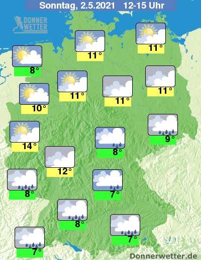 Heute Abend ist es über dem Norden bis in die Landesmitte hinein verbreitet wechselnd bis aufgelockert bewölkt und trocken. Im Süden fällt unter dichten Wolken weiterhin zeitweise Regen. Im übrigen Land ist es meist stark bewölkt, aber auch weitgehend trocken. Die Temperatur liegt bei 7 Grad in München und rund 14 Grad in Köln.