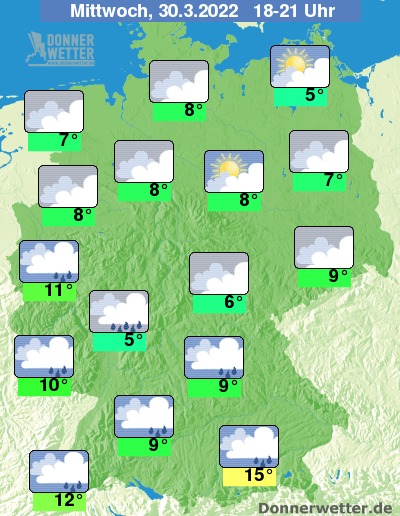 Heute Abend fällt im Süden und von Rheinland-Pfalz bis nach NRW unter dichten Wolken gebietsweise Regen. Im übrigen Land ist es auch meist dicht bewölkt und Auflockerungen zeigen sich nur selten, dazu bleibt es aber trocken. Die Temperatur liegt bei 5 Grad in Rostock und bis 15 Grad in München.