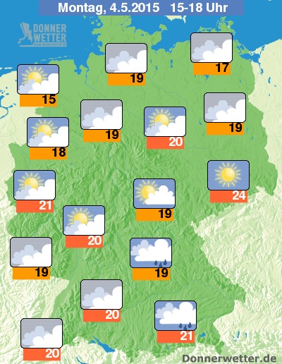 Heute Nachmittag bleibt es vor allem im Süden, aber auch im gesamten Küstenumfeld weitgehend stark bis dicht bewölkt, dazu bleibt es an den Küsten weitgehend trocken, im Süden kann hingegen auch immer wieder Regen fallen. In den übrigen Landesteilen gibt es häufig einen Wechsel aus Sonne und teils dichten Wolken, dazu bleibt es aber meist trocken. Die Temperatur liegt bei kühlen 15 Grad an der Nordsee und bis 24 Grad in Dresden.