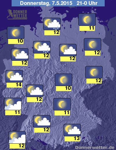 Heute Abend sind im Norden noch gebietsweise einzelne Schauer unterwegs, sonst zeigt sich aber ein überwiegend locker bewölkter oder auch sternenklarer Himmel, vor allem nach Südwesten hin können sich auch dichtere Wolken halten, dazu bleibt es jedoch trocken. Die Abendtemperatur liegt bei 14 Grad in Aachen und etwa 10 Grad im Coburger Land.