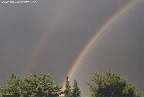 wunderschöner doppelter Regenbogen nach einem kräftigen Schauer (BB) Regen auf der Autobahn