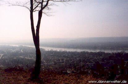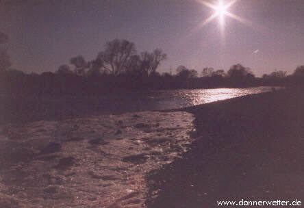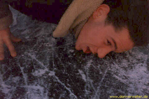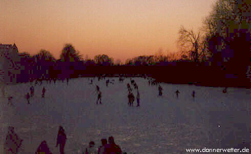 sonniger, aber dunstiger Wintertag, mild bei 2-4 Grad "Küß das Eis" im Winter 96/97 in Köln