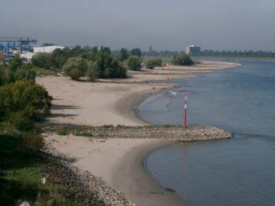 Flussaufwärts ist am Rhein bei Düsseldorf eine "Strandlandschaft" entstanden.