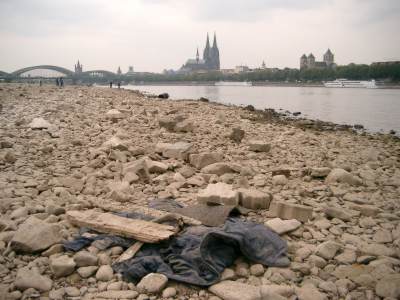 Auf der "scheel sick", dem"falschen" Rhein-Ufer in Köln, hinterlässt der Fluss eine Steinwüste...