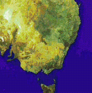 Satellitenbild der östlichen Hälfte Australiens. Am