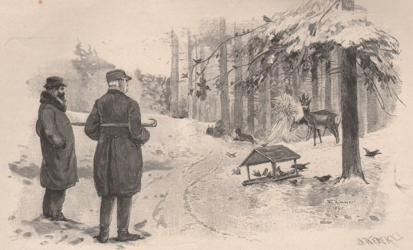 Zum anderen faszinieren die pickenden Vögel große und kleine Naturbeobachter und vermitteln zudem noch Artenkenntnis. Und das schon seit vielen Jahrzehnten und -hunderten, wie auch unser antiker Stich aus dem Jahre 1895 zeigt: