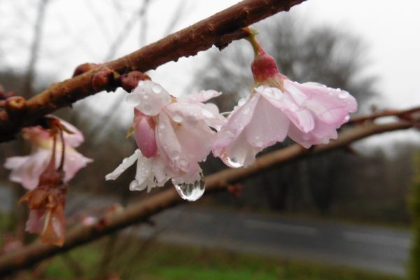 Über jeden Farbtupfen in der Landschaft ist man in der kalten Jahreszeit dankbar. Eine der wenigen Pflanzen, die um diese Jahreszeit in Blüte stehen, ist die Schnee-, bzw. Winterkirsche.