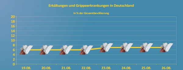 Verantwortlich für den hohen Krankheitsstand, der zum Ende dieser Woche bei etwa sieben Prozent liegt, dürfte neben dem wechselhaften Wetter der letzten Woche auch der Schulstart in vielen Bundesländern sein. Die Viren haben nun wieder leichtes Spiel...