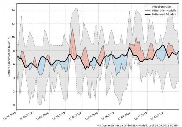 Unsere aktuellen Langfristprognosen für Lufttemperatur, Sonnenscheindauer und Niederschlagshöhe.