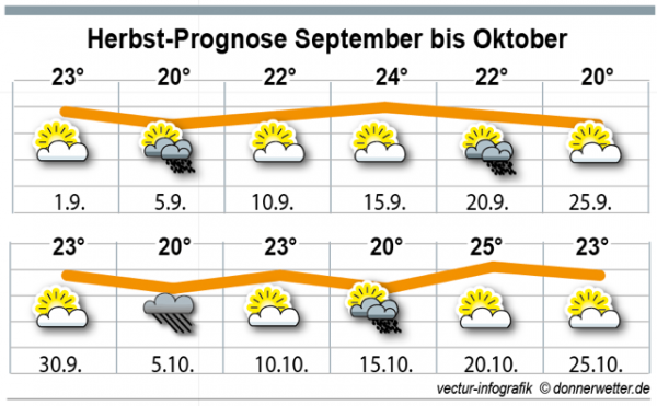 Ähnlich freundlich und vor allem sehr mild geht es dann auch in den Oktober. Bis Mitte Oktober rechnet donnerwetter.de mit gutem Wetter.