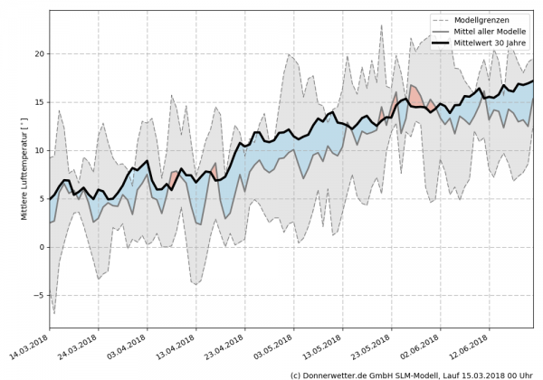 Unsere aktuellen Langfristprognosen für Lufttemperatur, Sonnenscheindauer und Niederschlagshöhe.
