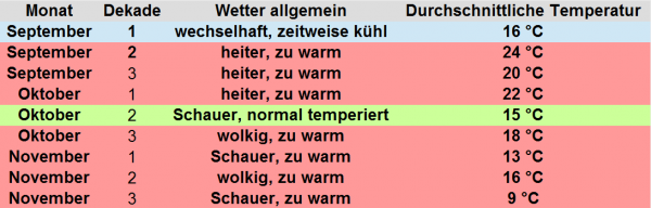 Ebenso stehen für das Restjahr 2016 aktuell alle Zeichen auf "mild". Besonders der Oktober und November dürften in ihrem Monatsmittel über den langjährigen Durchschnittswerten liegen; und auch ein, zumindest in Teilen, zu milder Winter ist wahrscheinlich.