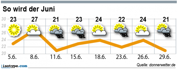 Besonders schöne Phasen, sind vor allem um den 8.6. und 18.6. herum zu erwarten. Diese bringen endlich zeitweise Sommerfeeling.