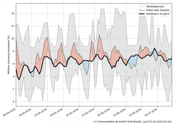 Unsere aktuellen Langfristprognosen für Lufttemperatur, Sonnenscheindauer und Niederschlagshöhe.