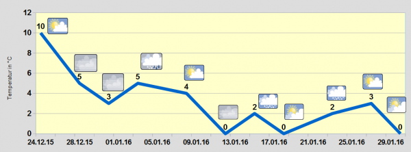 Durchschnittstemperaturen und Wetter bis 30.01.2016