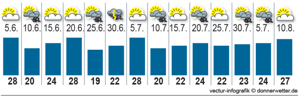 Während der Jetstram vor allem im nördlichen Mitteleuropa und Skandinavien für eher ungünstiges Sommerwetter sorgt, stehen die Chancen im Alpenraum ein wenig besser. Zwar ist man auch hier vor regnerischen Phasen nicht gefreit, es sind aber auch immer wieder längere Schönwetterphasen zu erwarten.