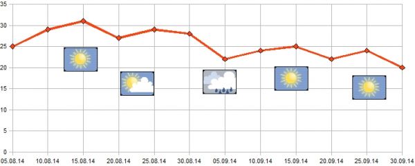 Die Chancen auf einen sonnigen August und September sind sehr hoch. In vielen Jahren mit El Nino-Entwicklung (wie in diesem Jahr) gab es einen sonnigen und warmen Spätsommer (siehe untere Temperaturgrafik mit der Höchsttemperatur in Deutschland in 5 Tages-Schritten). Wechselhafte Phasen werden jetzt Anfang August und kurz zu Beginn des Septembers erwartet.