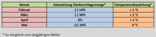 Insgesamt wird der Februar wohl um 1 Grad C zu mild, der März sogar um bis zu 2 Grad C  und zu trocken.