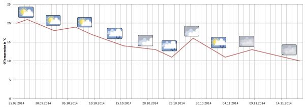 Selbst Mitte November liegen die Durchschnittstemperaturen um die 10 °C - für diese Jahreszeit deutlich zu mild.