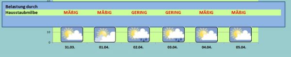 Die zunehmende Feuchtigkeit lässt das Hausstaubrisiko in der ersten Aprilwoche ansteigen. Mitunter müssen sich Allergiker nun auf mäßige Belastungen einstellen.