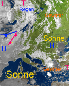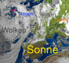 Sonne im Osten und Süden - Regenwolken über Teilen Skandinaviens