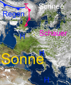 Neues Frontensystem mit Kaltluft im Gepäck auf dem Weg nach Mitteleuropa