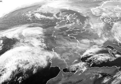 Tief 'Jasmin' löst sich nun allmählich auf, die Wolkenspirale nördlich von Schottland wird immer lockerer und dünner. Allerdings reicht ein Tiefausläufer bis nach Deutschland und sorgt am Mittwoch noch für Regen. Das neue, deutlich dynamischere Tief 'Karin' zieht unterdessen auf dem Atlantik heran. Man erkennt gut die hohen und damit hellen Wolkenbänder entlang der Kaltfront und hakenförmig um das Tiefzentrum.