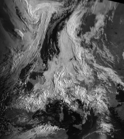Von Nordspanien bis nach Skandinavien erstreckt sich eine geschlossene Wolkendecke. Ursache ist die über Westeuropa weit nach Süden vorgedrungene kalte und feuchte Luft. Massiveren Regen bringen jedoch nur die hochreichenden Wolkenfelder, wie sie etwa von Norditalien nach Süddeutschland ziehen.