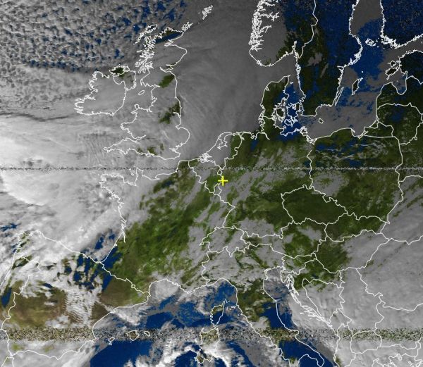 Auf dem Satellitenfoto von heute Nachmittag ist die enorme Erstreckung des Wolkenbands von der Biskaya über die Britischen Inseln bis nach Skandinavien ersichtlich. Es gehört zu einem sehr kräftigen Sturmtief bei Island und sorgt für sehr ungemütliches, nasskaltes und windiges Wetter. In der Nacht zum Mittwoch wird das dichte Wolkenband von Nordwesten her nach Deutschland getrieben und erreicht im Laufe des Tages auch den Südosten des Landes.
