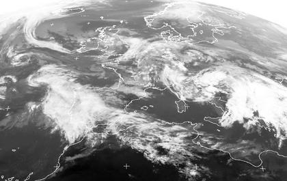 Das Satellitenbild nach wie vor ein ziemlich typisches Wolkenbild über Europa, von Südwesten her ist feuchtmilde Luft eingeflossen in der sich verbreitet Schauer, vereinzelt auch Gewitter bilden. Im Nordosten ist ein Hochdruckgebiet wetterwirksam, das mit einer nördlichen Strömung kalte Luft bis fast ans schwarze Meer bringt.