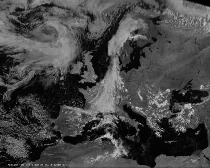 Auf dem heutigen Satellitenfoto lässt sich ein breiter Wolkenstreifen erkennen, der sich von der Nordsee, über die Westhälfte Deutschlands bzw. das östliche Frankreich bis zur Cote A'zur hin erstreckt und dabei gebietsweise ergiebigen Regen bringt. Tiefdruckeinfluss und dichte Wolken sorgen außerdem über weiten Teilen Skandinaviens für nasskaltes Wetter mit zeitweiligen Niederschlägen. Auch sonst ist es sowohl von Südwest- bis Westeuropa als auch in Südosteuropa häufig leicht wechselhaft mit sonnigen Abschnitten und vor allem nachmittags möglichen Schauern und Gewittern. Weitgehend trocken und freundlich ist es unter Hochdruckeinfluss im Osten und Nordosten Europas, sowie weitgehend auch vom zentralen bis ins östliche Mittelmeer.