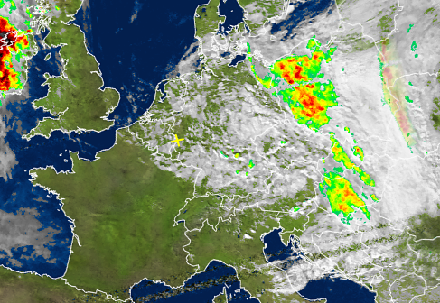 viele Wolken noch im Satellitenbild zu sehen
