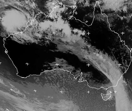 Eine Kaltfront liegt derzeit von Südost nach Nordwest über Australien. Dabei anstehen an dieser Front teils kräftige Gewitter. Vor der Nordwestküste liegt eine verdächtige Wolkenformation, die sich zum Zyklon entwickeln könnte.