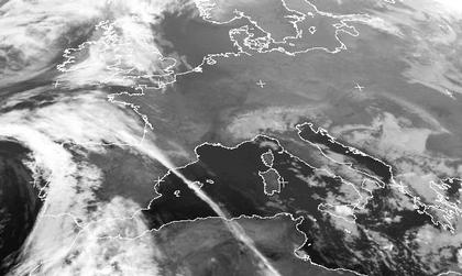Während das Hoch 'Leia' über der Ostsee für sonniges, fast Wolkenfreies Wetter in der Mitte Europas sorgt, bringt der Ausläufer des Atlantiktiefs 'Nando' Regenwolken von England bis nach Spanien und Portugal. Auf dem Satellitenbild vom Freitagmorgen erkennt man sehr gut die Wolken der Warmfront über der Biskaya, und die der Kaltfront über Portugal. Über dem östlichen Mittelmeer halten sich noch letzte Schauer und Gewitterwolken eines Tiefs über der Türkei. Sonst herrscht meist ruhiges und trockenes Wetter vor.