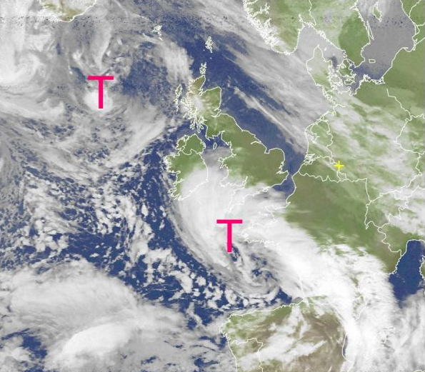 Ein intensiverer Tiefdruckwirbel hat sich vor Frankreich gebildet. Er wird morgen Deutschland erreichen und für stärkeren Regen sorgen.