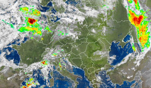Europa präsentiert sich aktuell zweigeteilt. Nördlich des Ärmelkanals, der Nord- und Ostsee und des Baltikums befinden sich aktuell zwei ausgeprägte Tiefdruckgebiete mit weiteren Randtiefs und bringen dem Norden Europas zalreiche, teils auch gewittrige, Niederschläge. Der Einfluss erstreckt sich heute im Süden bis ins nördliche Mitteleuropa und über dem Westen Russlands bis ans Schwarze Meer.