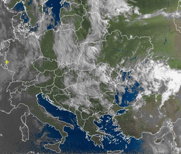Währenddessen sorgt ein weiteres Tief am Schwarzen Meer für dunkle Wolken und Regenfälle zwischen Moskau und Athen.