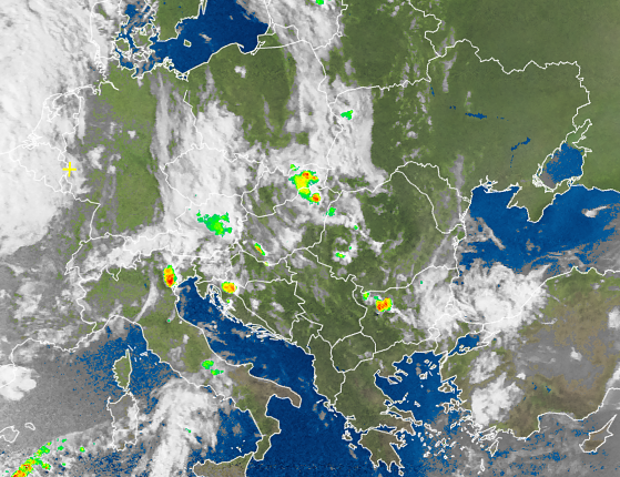 Wo kühle Luftmassen aus dem Westen auf warme Luft im Osten treffen, bilden sich ebenfalls Schauer, die auch kräftig ausfallen und von Gewittern begleitet werden. Betroffen ist hiervon vor allem der Norden Italiens und der Balkan.
