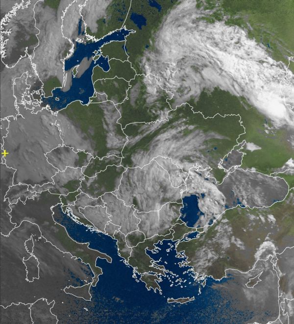 Satellitenbild: Dichte Wolken über Osteuropa
