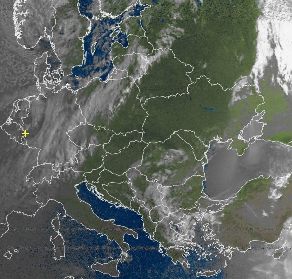 Tief "Ella" zieht nun über Skandinavien ihre Kreise und schickt mit teils stürmischem Wind aus nordwestlicher Richtung feuchte und kühle Luft nach Mitteleuropa. Dabei bilden sich an der Grenze zu wesentlich wärmeren Luftmassen im Süden und Osten Europas teils kräftige und unwetterartige Schauer und Gewitter. Diese Luftmassengrenze zieht sich heute von den Pyrenäen über die Alpen und Polen bis ans Baltikum.