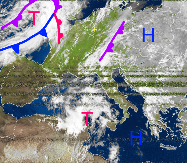 Eine Störungszone beschert dem Süden und Osten von Deutschland heute noch Regengüsse und einzelne Gewitter. Sonst hat sich von Spanien über Frankreich bis in die Nordwesthälfte unseres Landes eine freundliche Zone aufgetan.