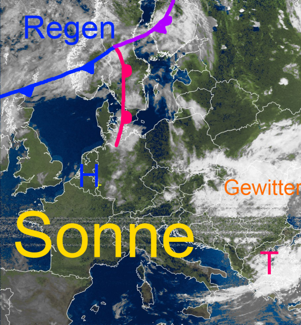 Auch über Osteuropa und am Schwarzen Meer findet man dichtere Schauer- und Gewitterwolken.