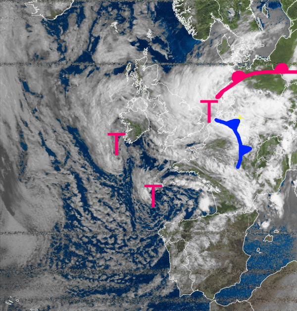 Die schwül-warme Luftmasse über Mitteleuropa wird allmählich durch kühlere Luft vom Atlantik ersetzt. In Folgedessen entwickeln sich mächtige Wolkenmassen mit teils kräftigen gewittrigen Regengüssen. Der Sommer macht zumindest mal in Deutschland bis übers Wochenende Pause.