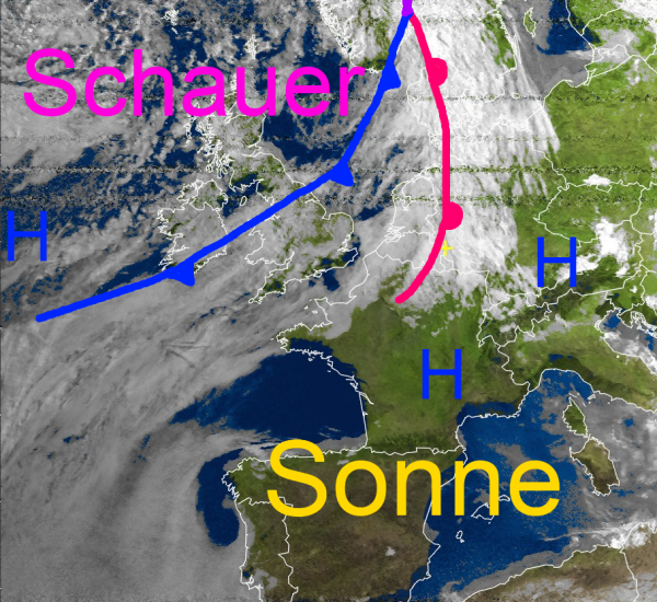 Kühles Schauerwetter hat sich hinter den Fronten über Nordwesteuropa eingestellt.
