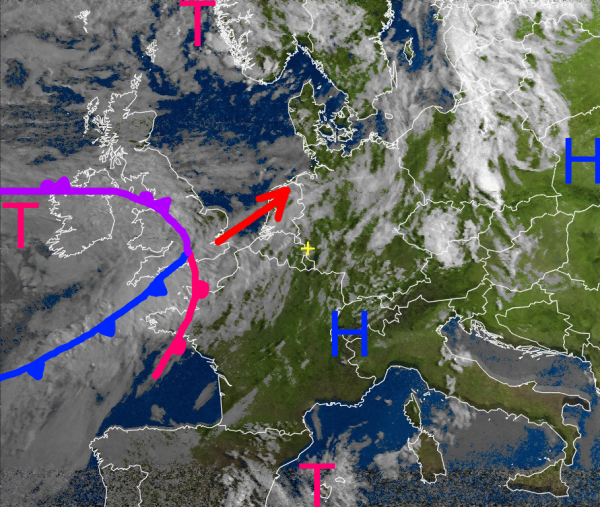 Ein kleines Zwischenhoch über den Westalpen führt zu einer kurzfristigen Wetterberuhigung über Mitteleuropa. Bei sommerlichen Temperaturen gibt es in den meisten Landesteilen eine recht freundliche Mischung aus Sonne und Wolken. Zum Abend ziehen jedoch die Fronten eines neuen Atlantiktiefs heran und sorgen in der Nacht im Nordwesten für neuen Regen.