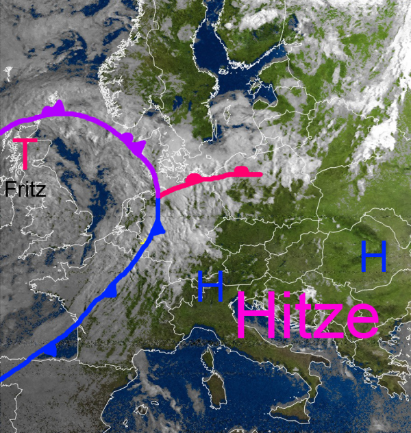 Ganz anders ist das Wetter über Südeuropa und dem Balkan. Hier hälte eine Hitzewelle mit Temperaturen von teilweise über 40 Grad die Menschen in Atem. Etwas von der Hitze bekommt auch der Süden und Südosten Deutschlands zu spüren. Während sich aber zum Wochenende hierzulande verbreitet kühlere Atlantikluft durchsetzt, müssen sich die Südeuropäer noch bis mindestens Mitte nächster Woche mit schweißtreibenden Temperaturen abfinden.
