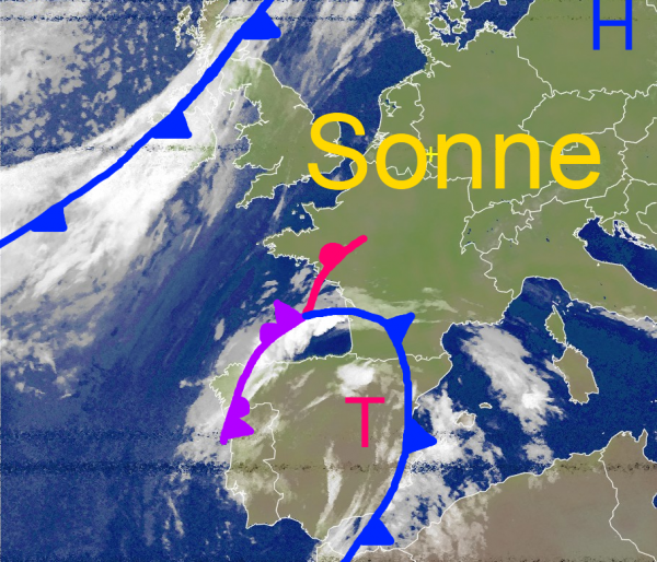 Über weiten Teilen Mitteleuropas erkennt man kaum ein Wölkchen am Himmel. Er herrscht einfach nur klassisches Hochsommer- und Badewetter im Land. Dies wird sich jedoch bald ändern, denn das Tief über Spanie wandert allmählich nach Nordosten und wird in Verbindung mit der Atlantischen Kaltfront am Donnerstag zu einem Wettersturz führen. Dabei drohen örtlich auch wieder Unwetter mit der Gefahr von Überschwemmungen.