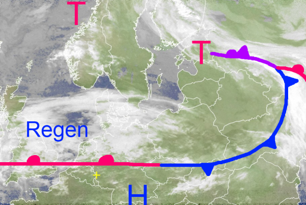 Über der Nordsee formiert sich zur Zeit ein Regenband. Es wird Deutschland in der Nacht und morgen von Nord nach Süd überqueren und die warme Luft im Südwesten durch kühlere Nordseeluft ersetzen. Bei diesem Luftmassenaustausch sollte sich die in Teilen Deutschlands vorhandene Hochnebelpampe endlich mal wieder auflösen und der Sonne Platz machen.